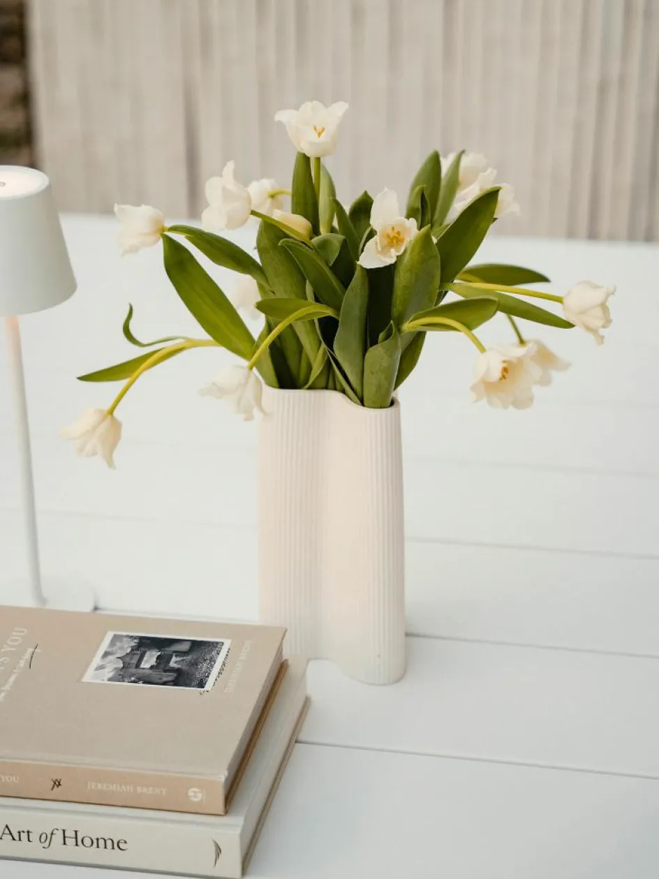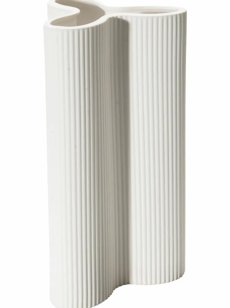 Besonders anmutig geformte Keramikvase in mattem Weiß.