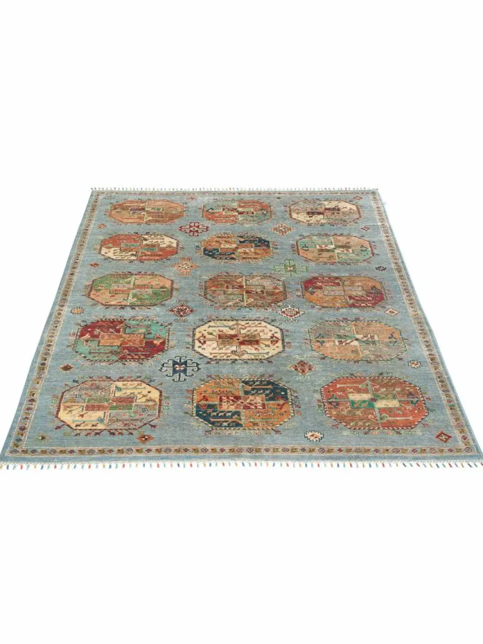 zeigt im Muster das klassische turkmenische Bucharadesign. Als Vorbild dienen dabei die jeweilige Stammeszeichen (Gül