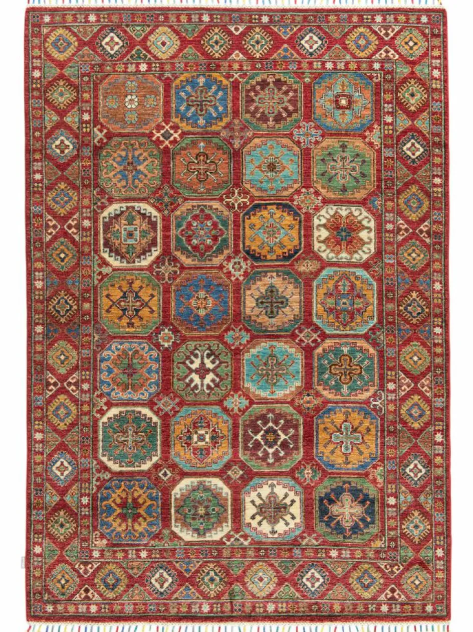 zeigt im Muster das klassische turkmenische Bucharadesign. Als Vorbild dienen dabei die jeweilige Stammeszeichen (Gül