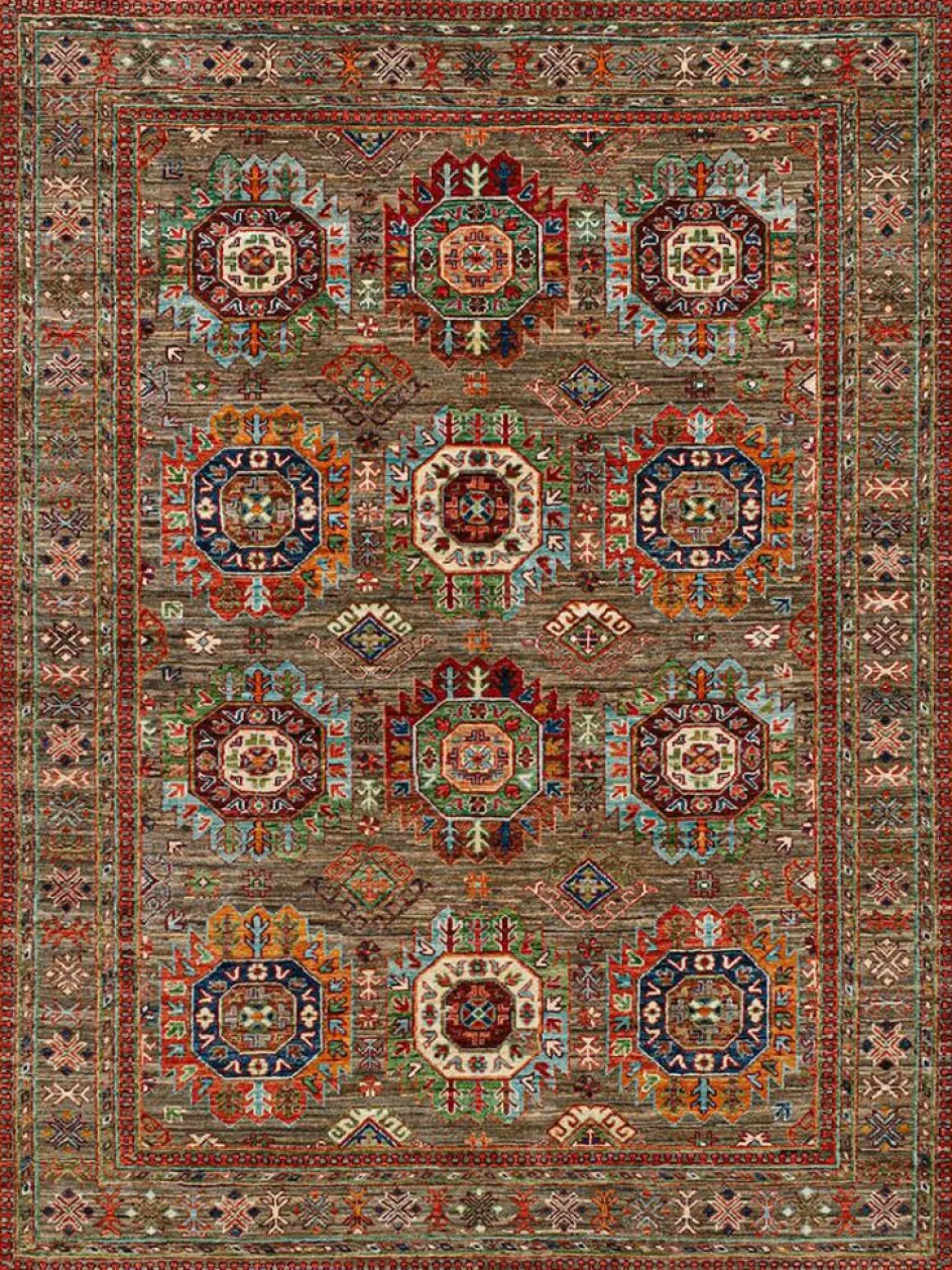 zeigt im Muster das klassische turkmenische Bucharadesign. Als Vorbild dienen dabei die jeweilige Stammeszeichen (Gül