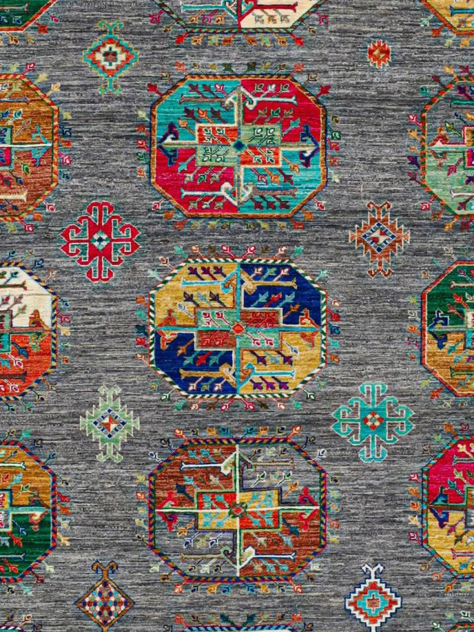 zeigt im Muster das klassische turkmenische Bucharadesign. Als Vorbild dienen dabei die jeweilige Stammeszeichen (Gül