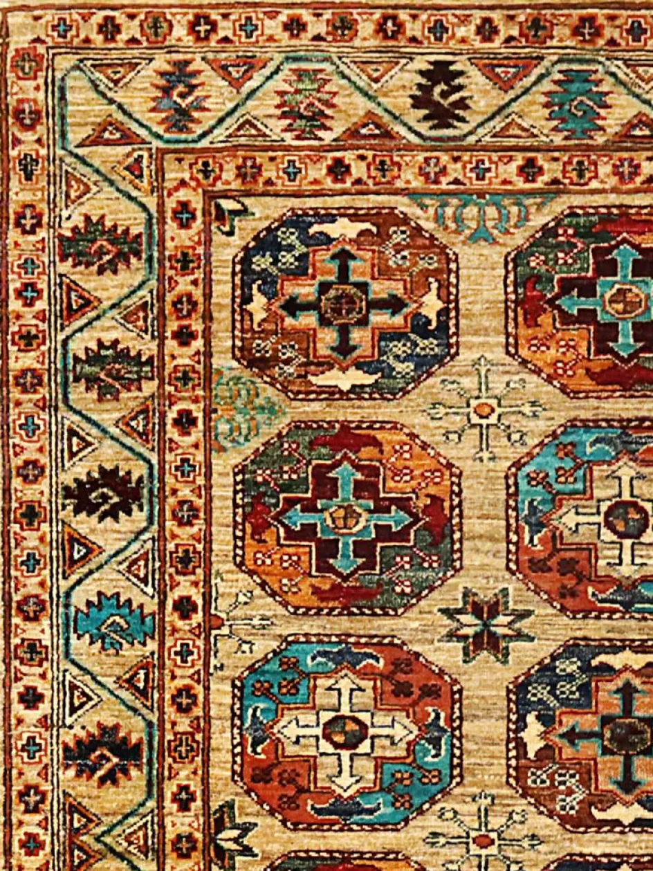 zeigt im Muster das klassische turkmenische Bucharadesign. Als Vorbild dienen dabei die jeweilige Stammeszeichen (Gül