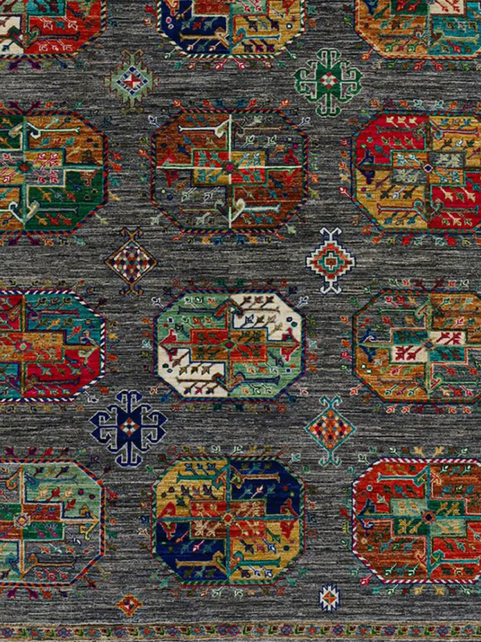 zeigt im Muster das klassische turkmenische Bucharadesign. Als Vorbild dienen dabei die jeweilige Stammeszeichen (Gül