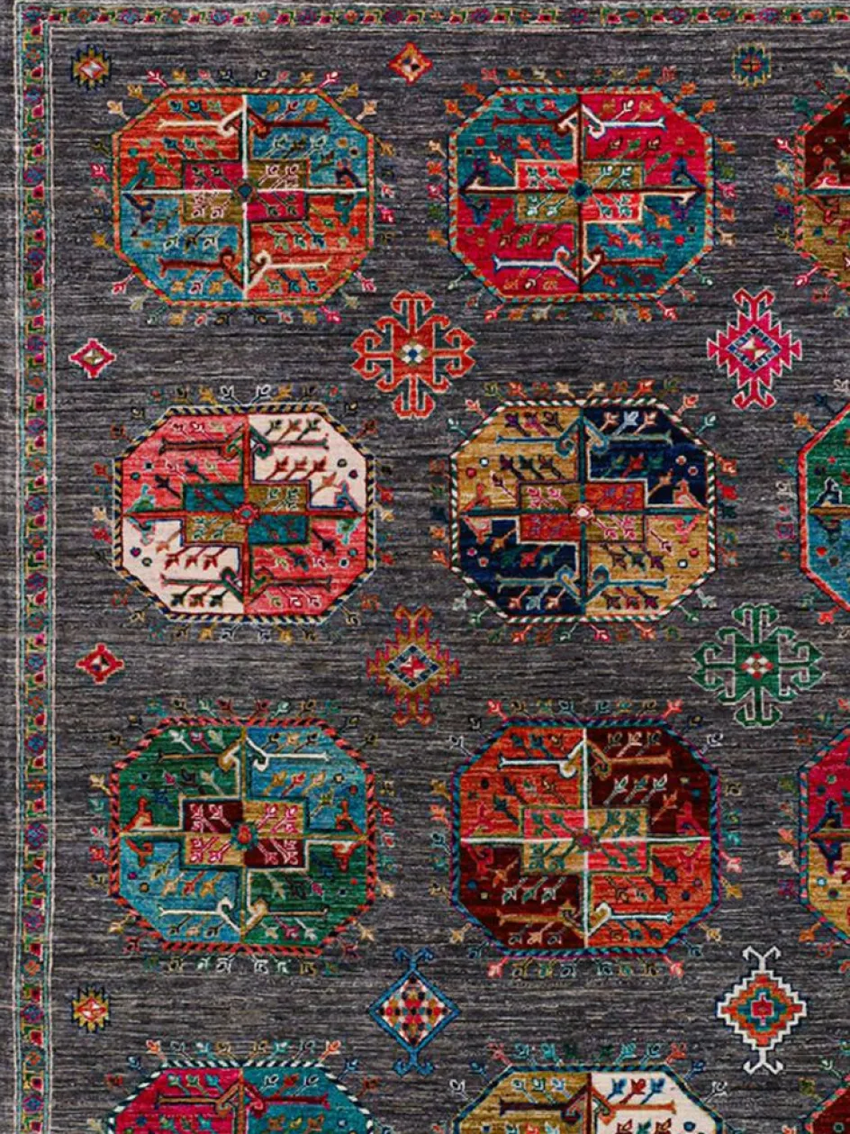 zeigt im Muster das klassische turkmenische Bucharadesign. Als Vorbild dienen dabei die jeweilige Stammeszeichen (Gül