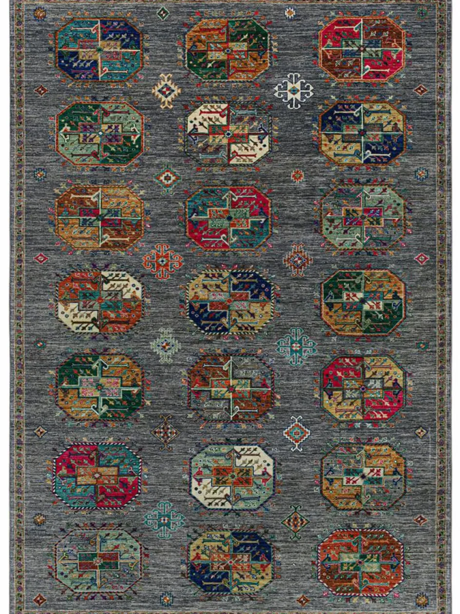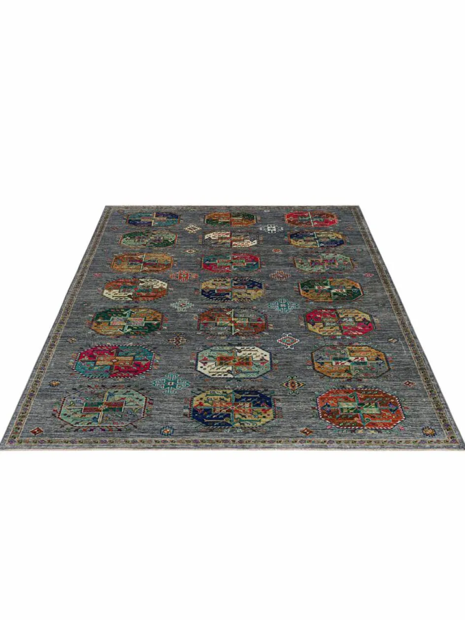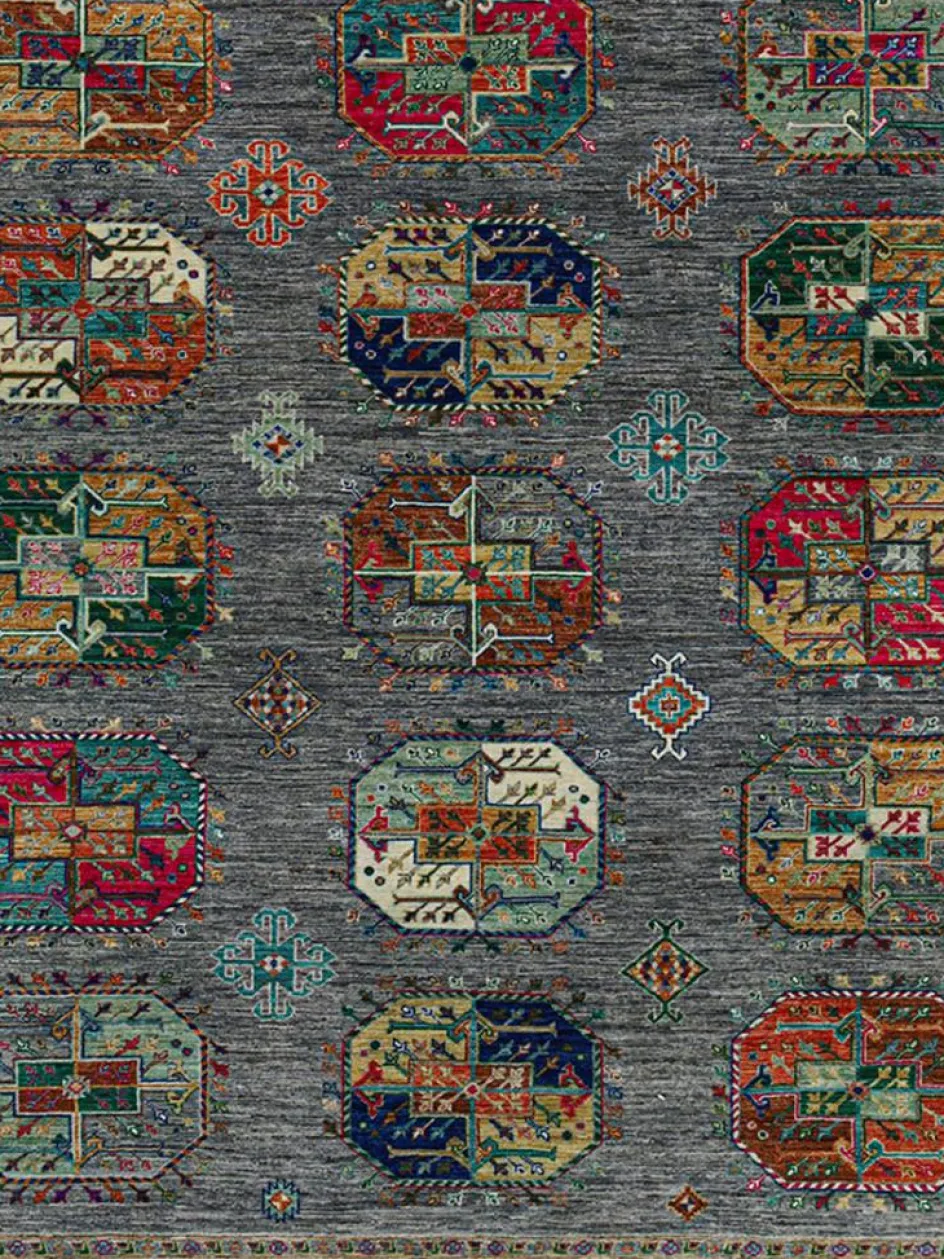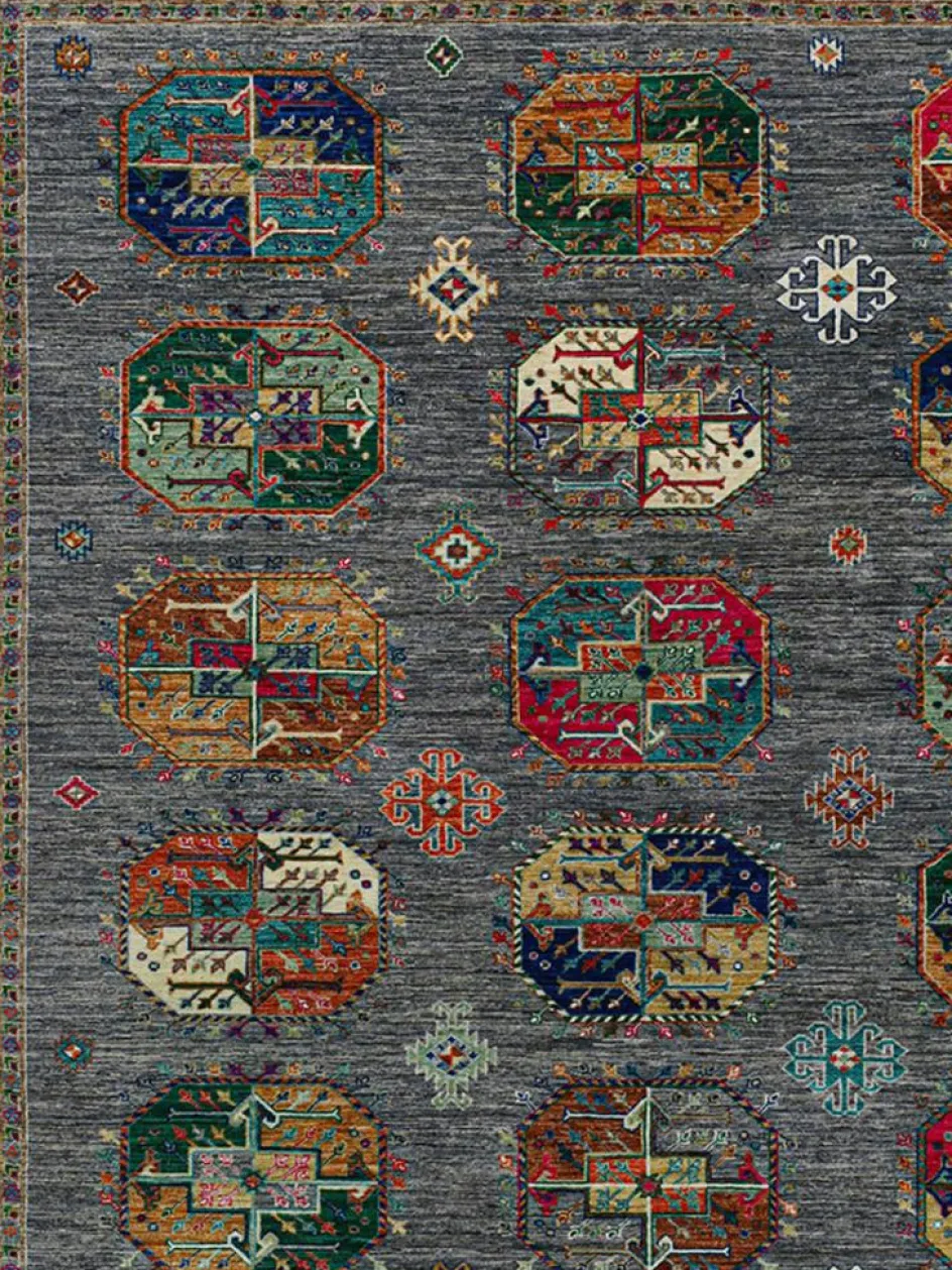 zeigt im Muster das klassische turkmenische Bucharadesign. Als Vorbild dienen dabei die jeweilige Stammeszeichen (Gül