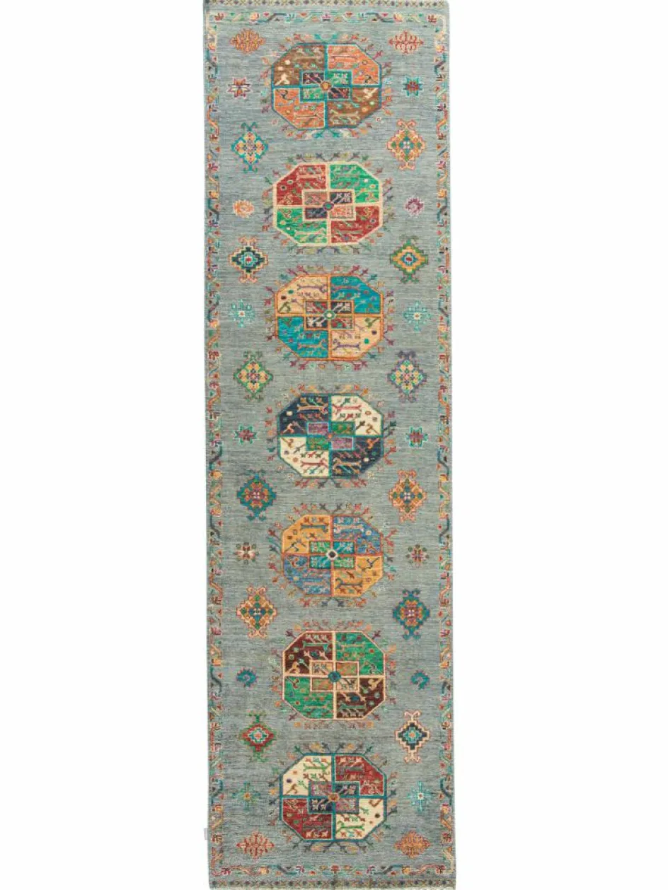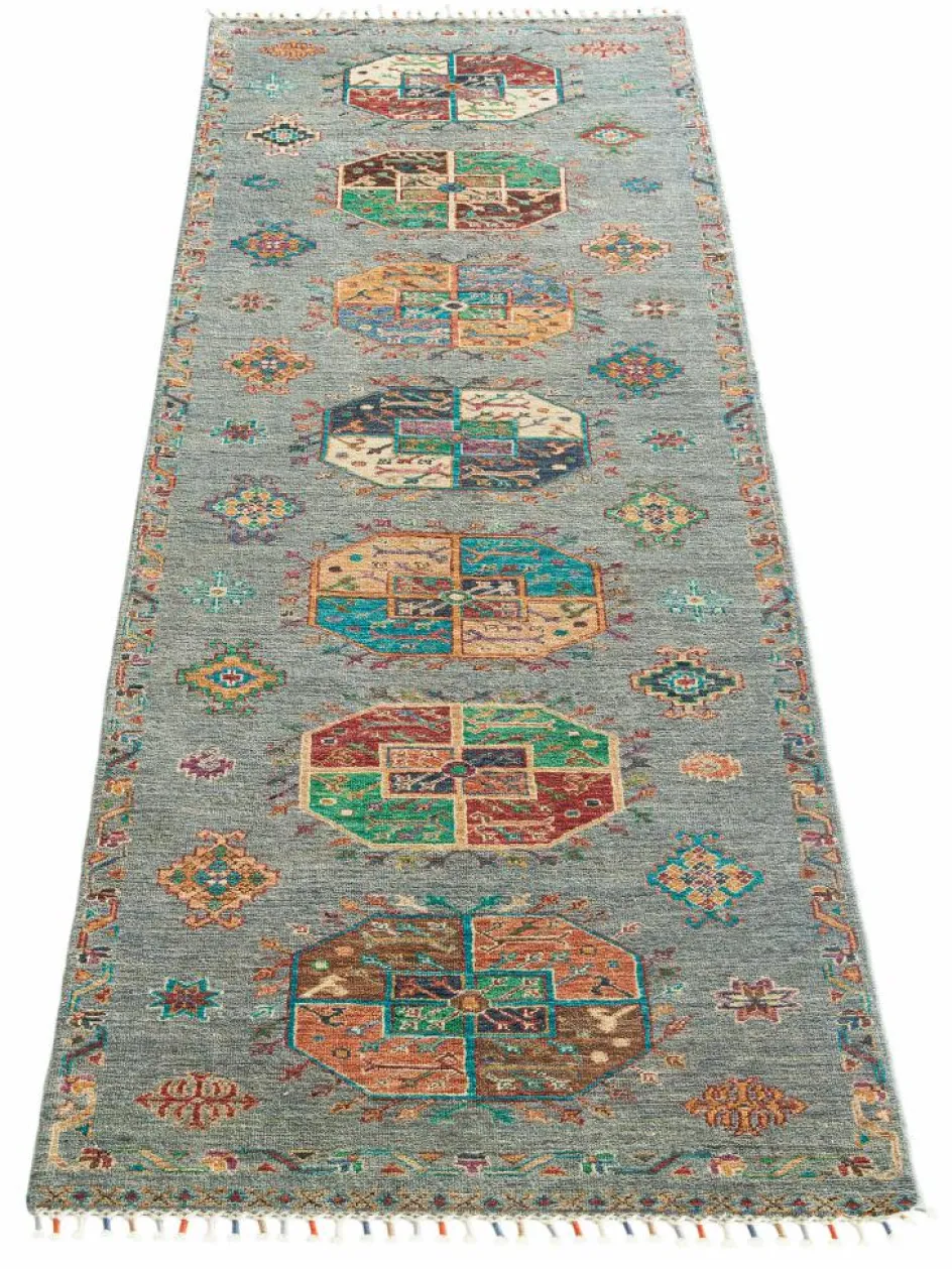 zeigt im Muster das klassische turkmenische Bucharadesign. Als Vorbild dienen dabei die jeweilige Stammeszeichen (Gül
