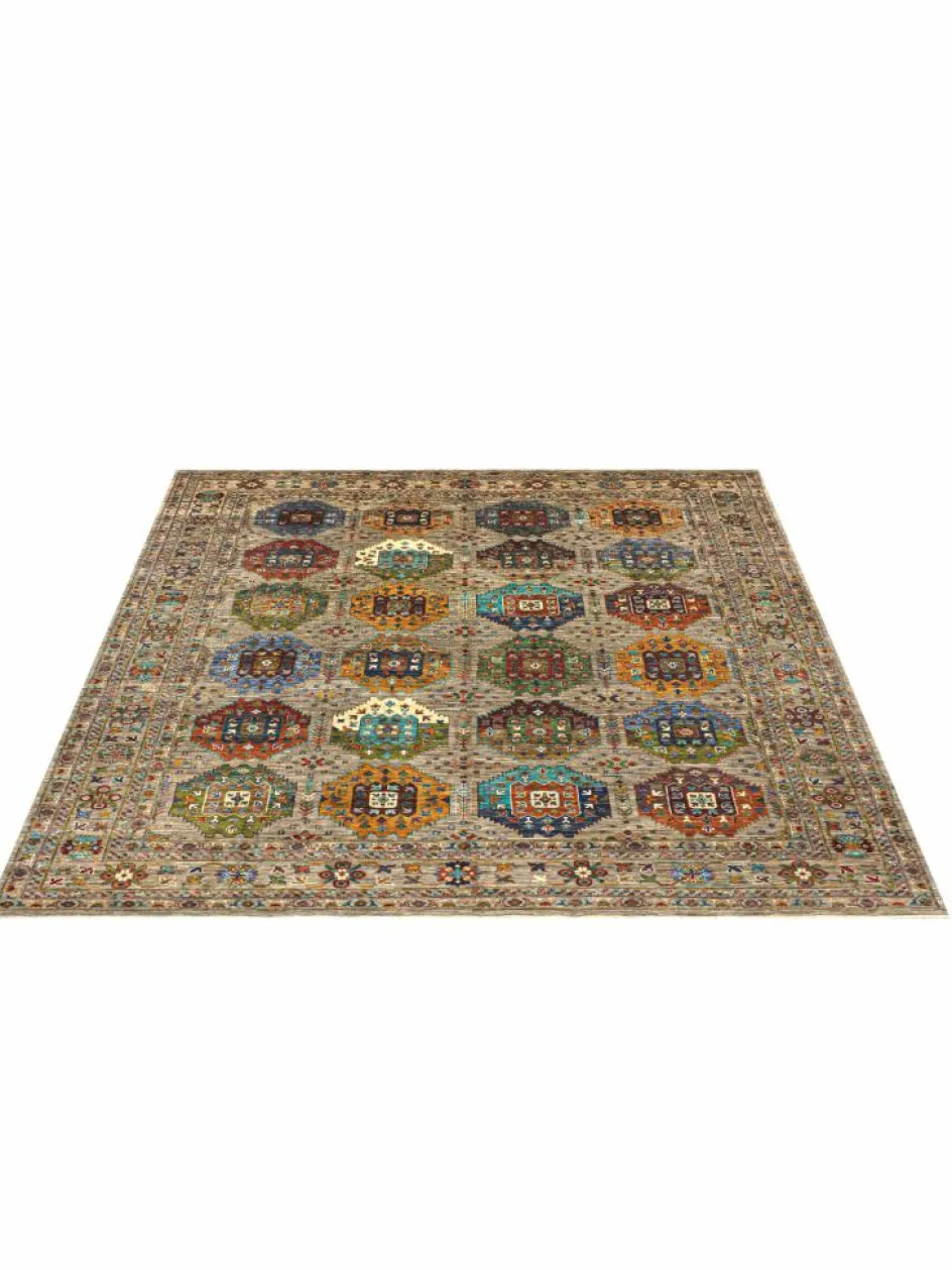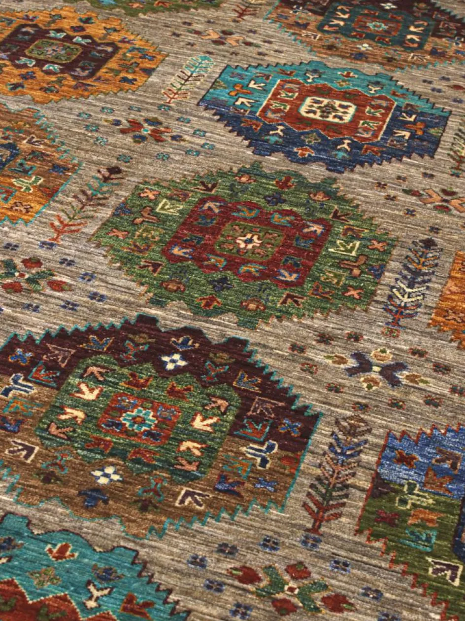 zeigt im Muster das klassische turkmenische Bucharadesign. Als Vorbild dienen dabei die jeweilige Stammeszeichen (Gül
