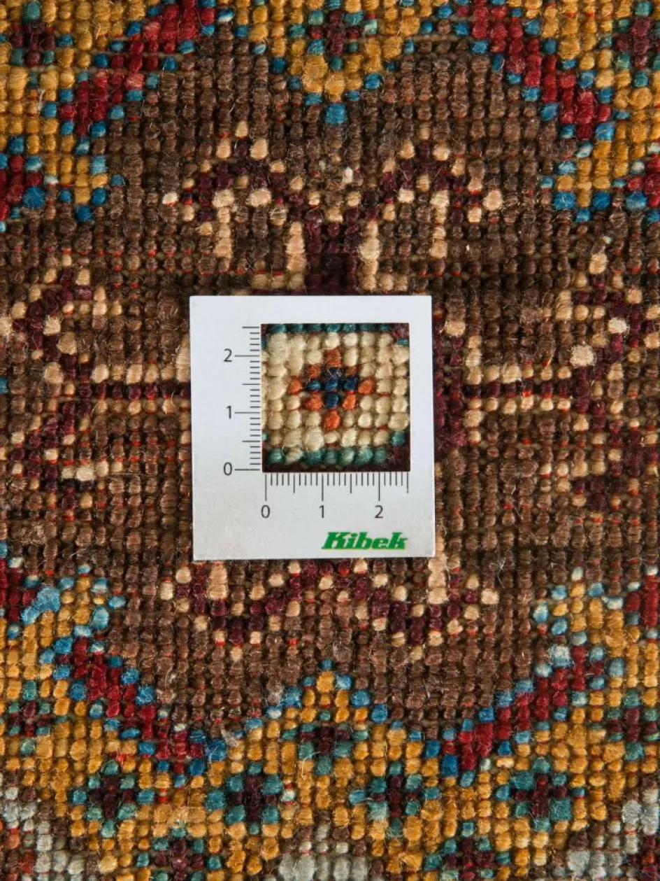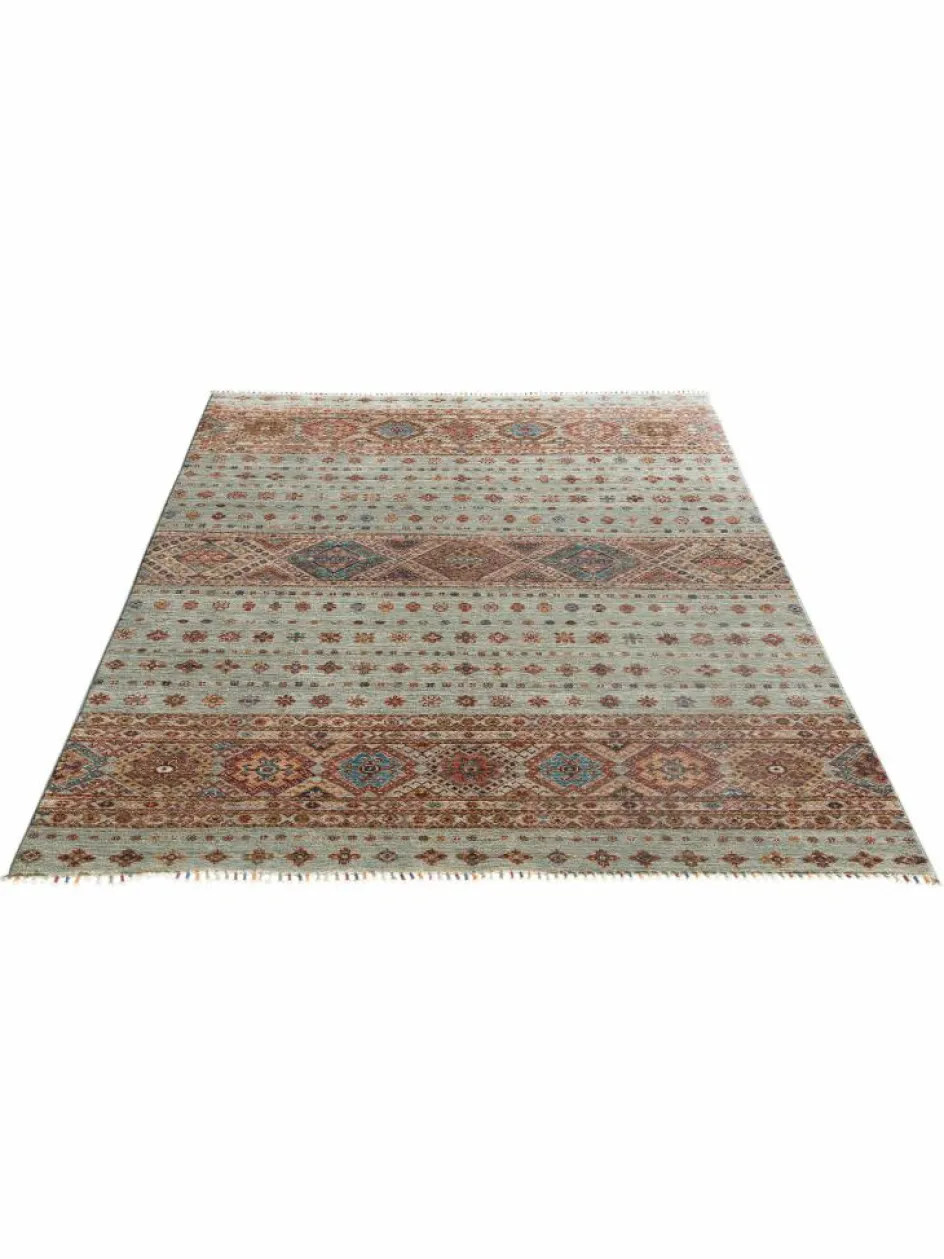 mit bunten Fäden zusammen gebunden. Durch den flachen und festen Flor ist der Teppich unempfindlich gegenüber den Belastungen des Alltags.| Gesamthöhe: | ca. 6 mm |
