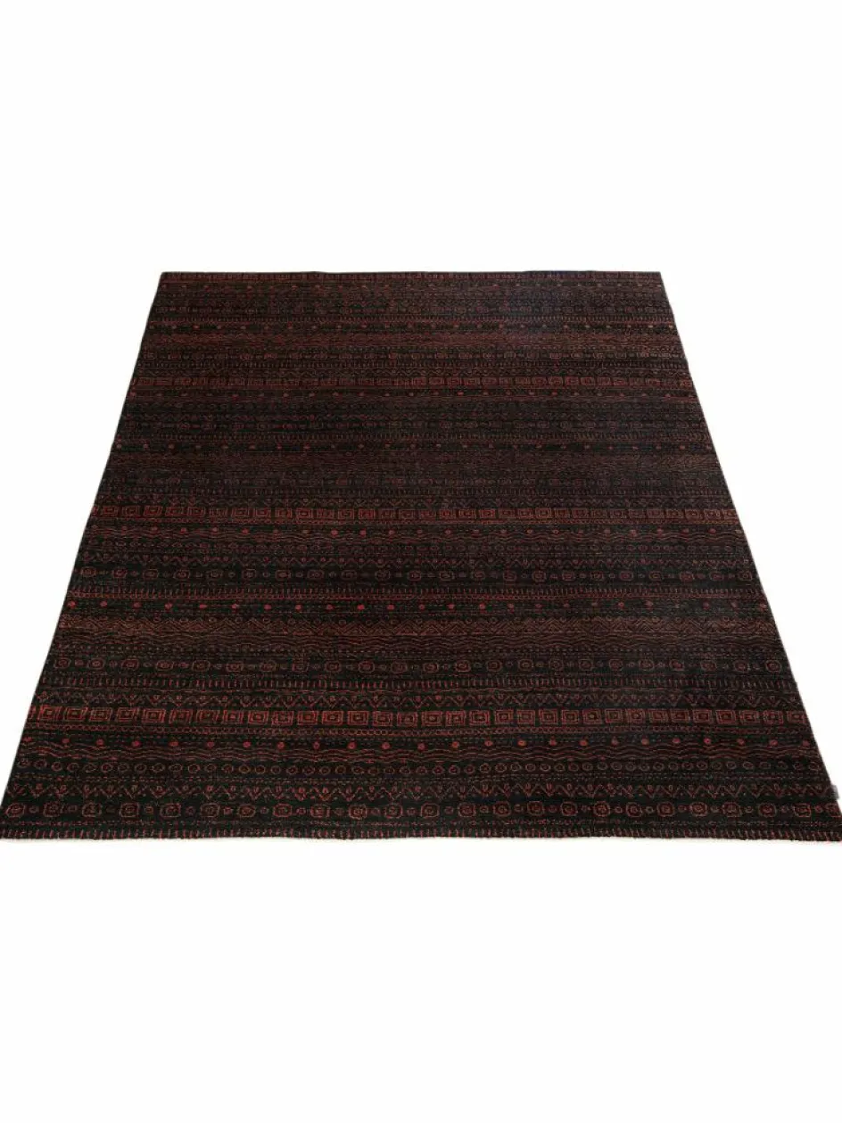 ist eine ungewöhnliche moderne Variation des traditionellen persichen Gabbehs. Er ist kürzer im Flor und feiner geknüpft. Es gibt zahllose Neukreationen in individuellen und einzigartigen Farben und Mustern.| Gesamthöhe: | ca. 10 mm |