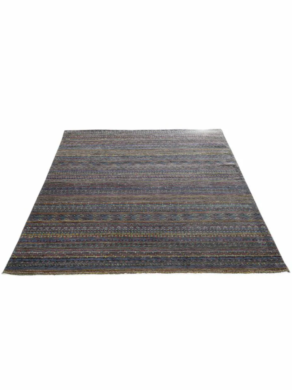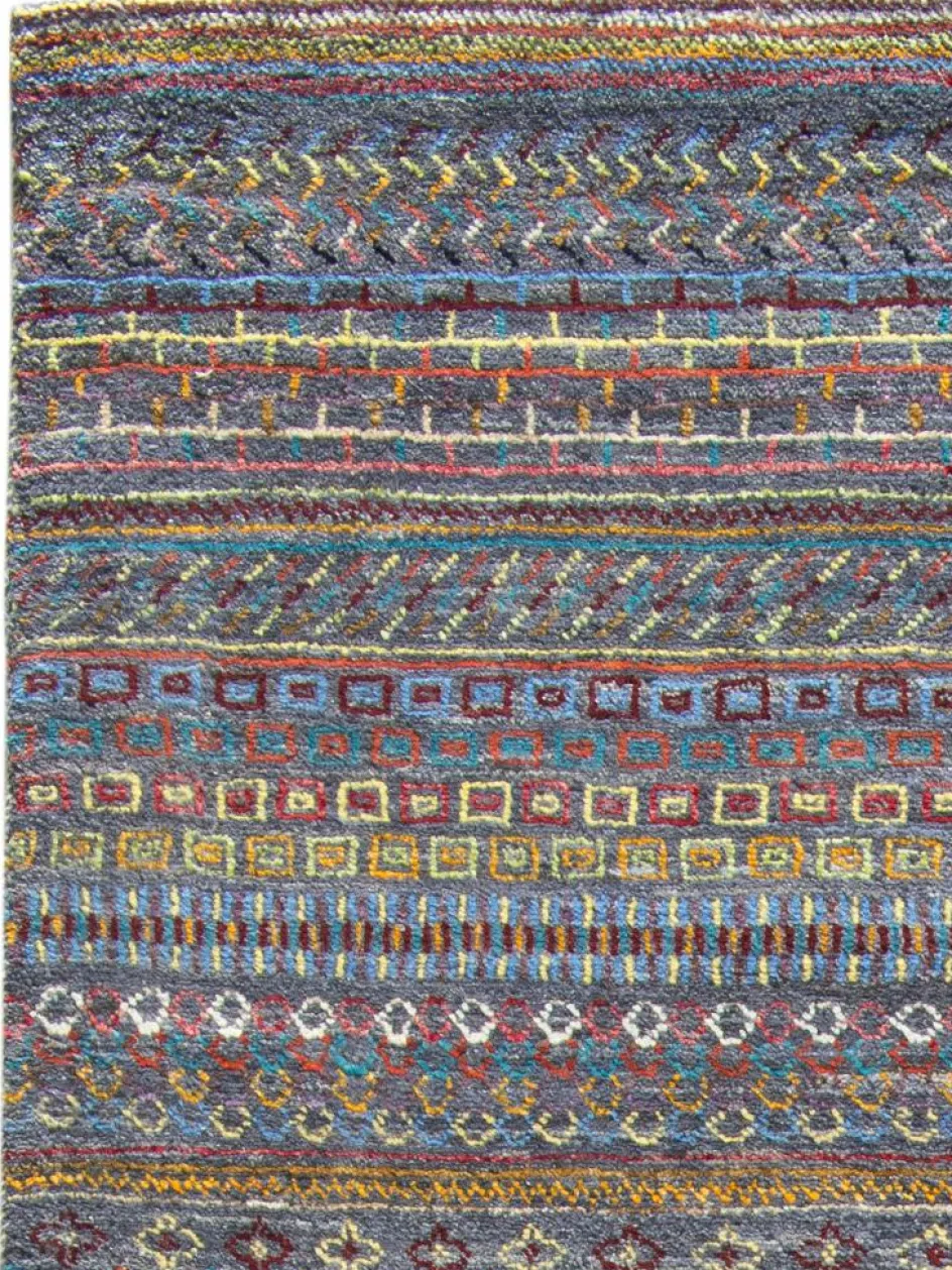 ist eine ungewöhnliche moderne Variation des traditionellen persichen Gabbehs. Er ist kürzer im Flor und feiner geknüpft. Es gibt zahllose Neukreationen in individuellen und einzigartigen Farben und Mustern. – Fein geknüpft inDouble-Knot
