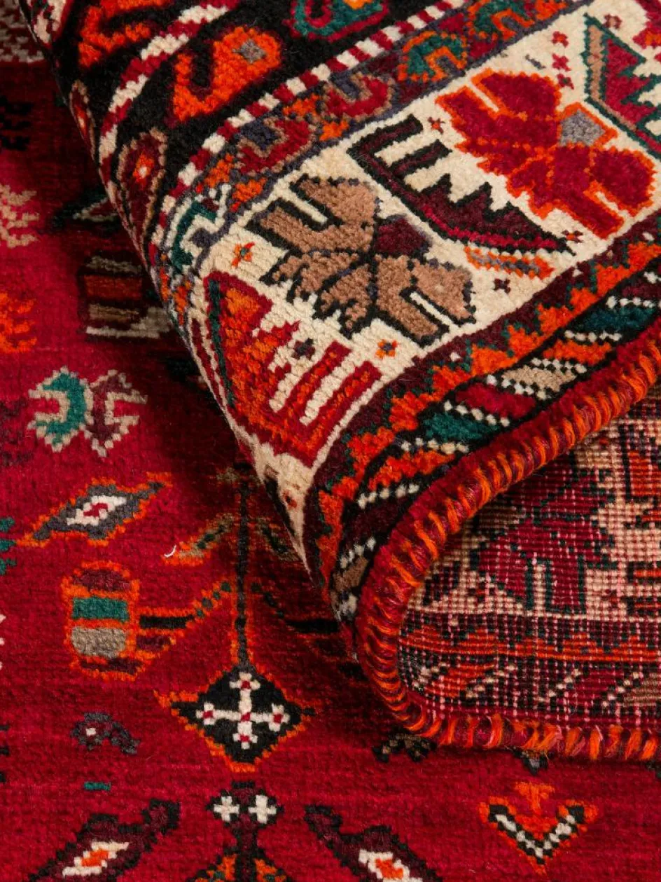 -Teppiche sind die Könige unter den Nomadenteppichen. Knüpfvorlagen gibt es bei den Ghashgai nicht. Die Knüpferinnen haben ein sehr gutes Gedächtnis. Sie brauchen ein interessantes Motiv nur einmal zu sehen oder erzählt zu bekommen. Alle Teppiche werden aus dem Gedächtnis geknüpft und sind daher nie gleich. Die Ornamente werden immer anders angeordnet oder die Farben unterscheiden sich. DasGrundgewebe