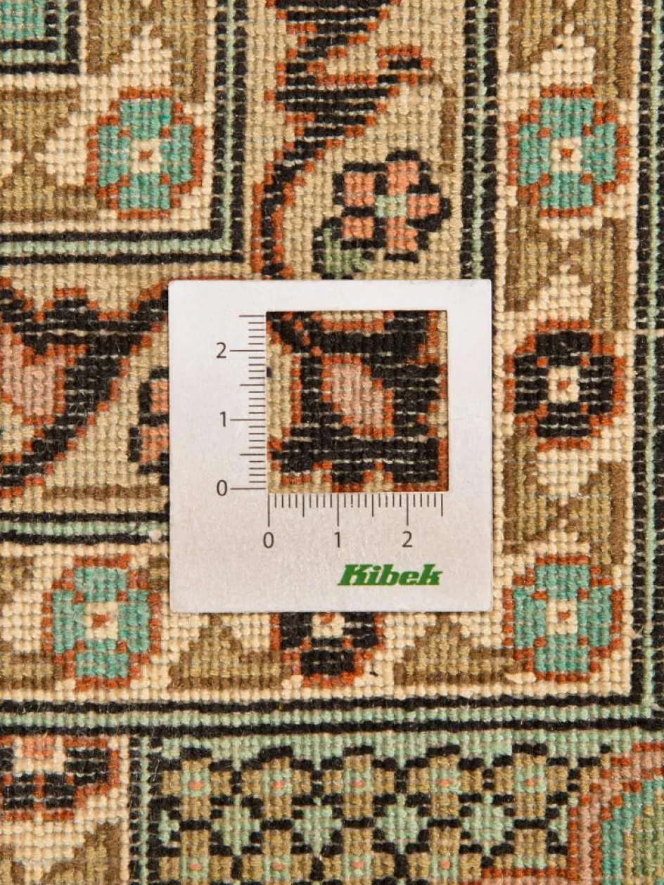 -Teppiche sind eher zurückhaltend, die Muster nach wie vor sehr stark persisch beeinflusst. Florale Motive und das persischeFeldermuster