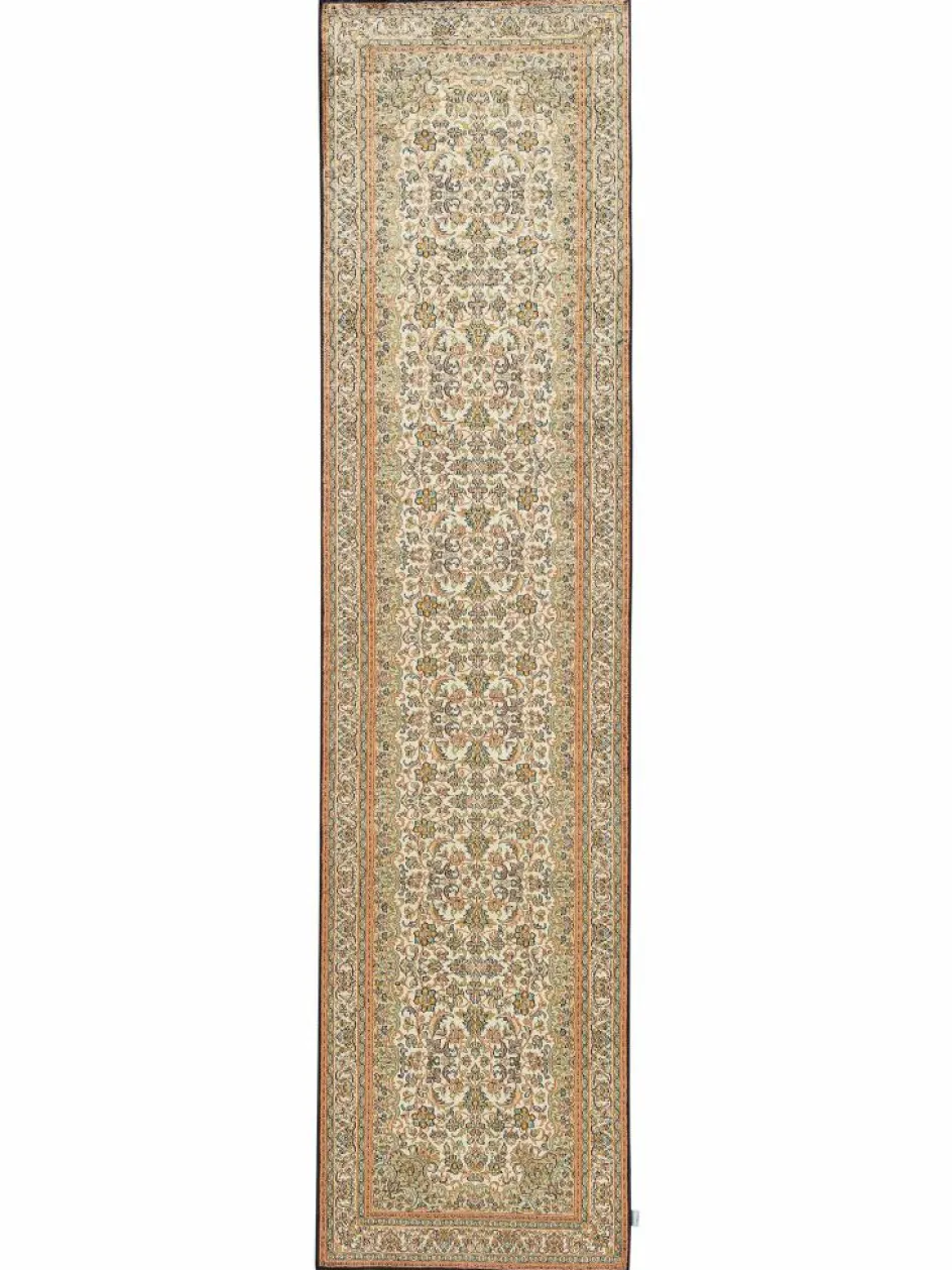 -Teppiche sind eher zurückhaltend, die Muster nach wie vor sehr stark persisch beeinflusst. Florale Motive und das persischeFeldermuster