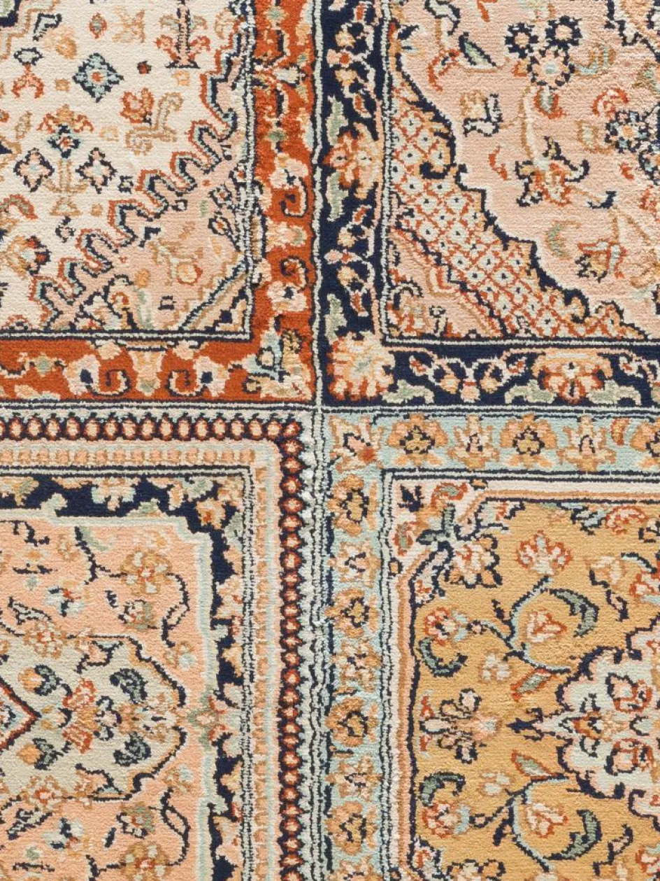 -Teppiche sind eher zurückhaltend, die Muster nach wie vor sehr stark persisch beeinflusst. Florale Motive und das persischeFeldermuster