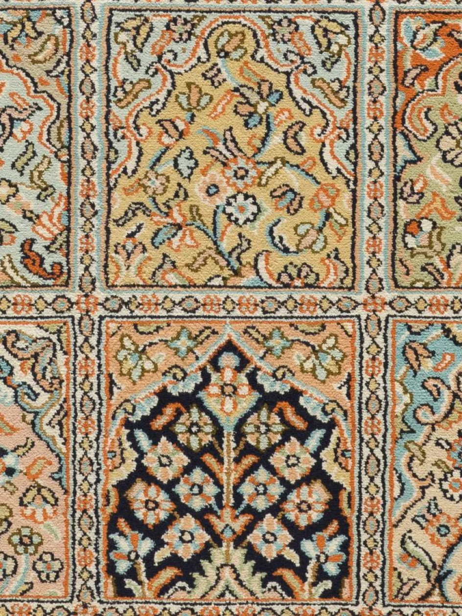 -Teppiche sind eher zurückhaltend, die Muster nach wie vor sehr stark persisch beeinflusst. Florale Motive und das persischeFeldermuster