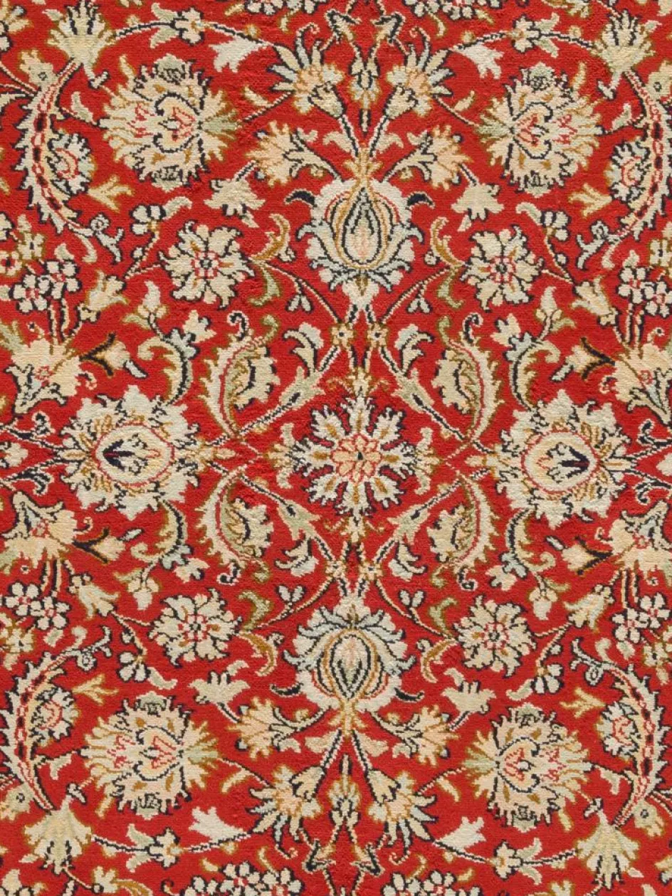 -Teppiche sind eher zurückhaltend, die Muster nach wie vor sehr stark persisch beeinflusst. Florale Motive und das persischeFeldermuster