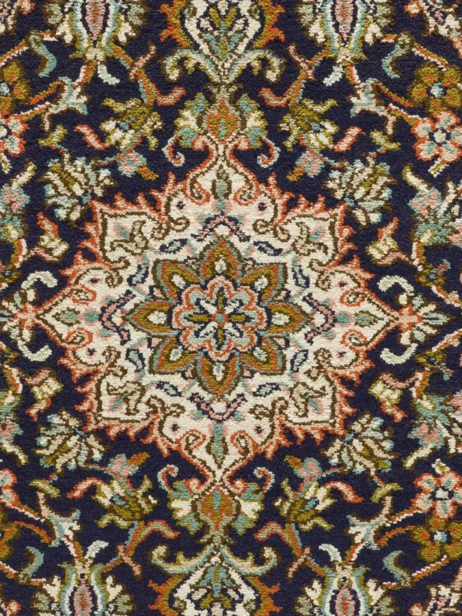 -Teppiche sind eher zurückhaltend, die Muster nach wie vor sehr stark persisch beeinflusst. Florale Motive und das persischeFeldermuster