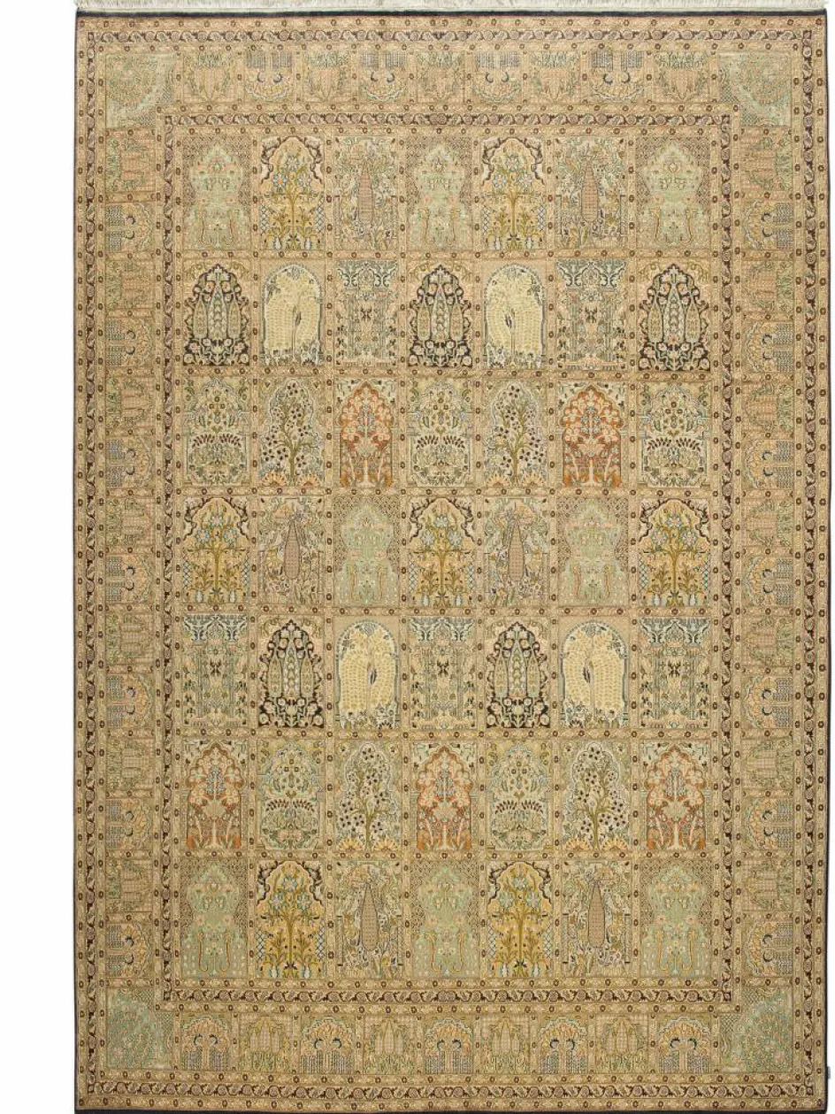 -Teppiche sind eher zurückhaltend, die Muster nach wie vor sehr stark persisch beeinflusst. Florale Motive und das persischeFeldermuster