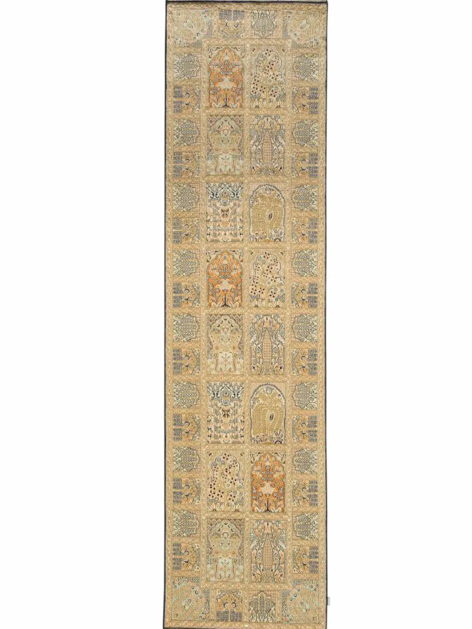 -Teppiche sind eher zurückhaltend, die Muster nach wie vor sehr stark persisch beeinflusst. Florale Motive und das persischeFeldermuster
