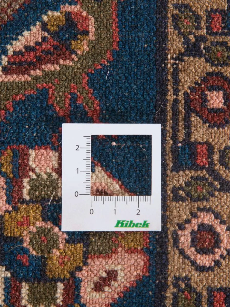 finden sich die unterschiedlichsten Dessins anderer Provenienzen, die in einer kurdentypischen Art und Weise, in völlig anderen Farben, geknüpft werden. Meist ist die Farbgebung der Teppiche eher dunkel. Der hohe Flor ist aus guter Bergschafwolle und besonders haltbar.| Gesamthöhe: | ca. 11 mm |