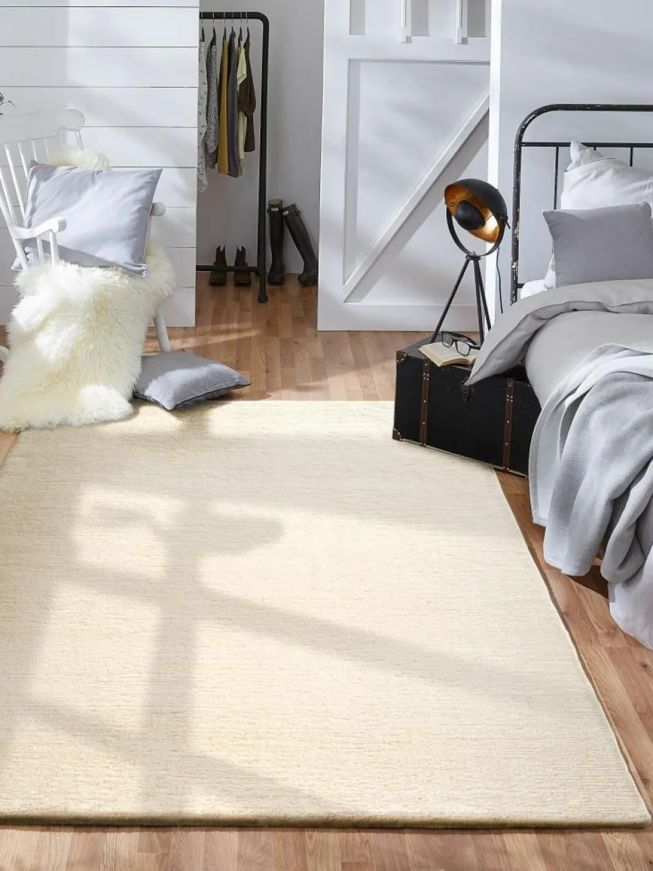 im Flor gefertigt wurde, kann er viel Feuchtigkeit aus der Luft aufnehmen und bei abfallender Luftfeuchtigkeit diese wieder abgeben. Wenn der Teppich nicht mehr als 50 % des Fußbodens eines Raumes bedeckt, ist er für Fußbodenheizung geeignet. Teppiche ausSchurwolle