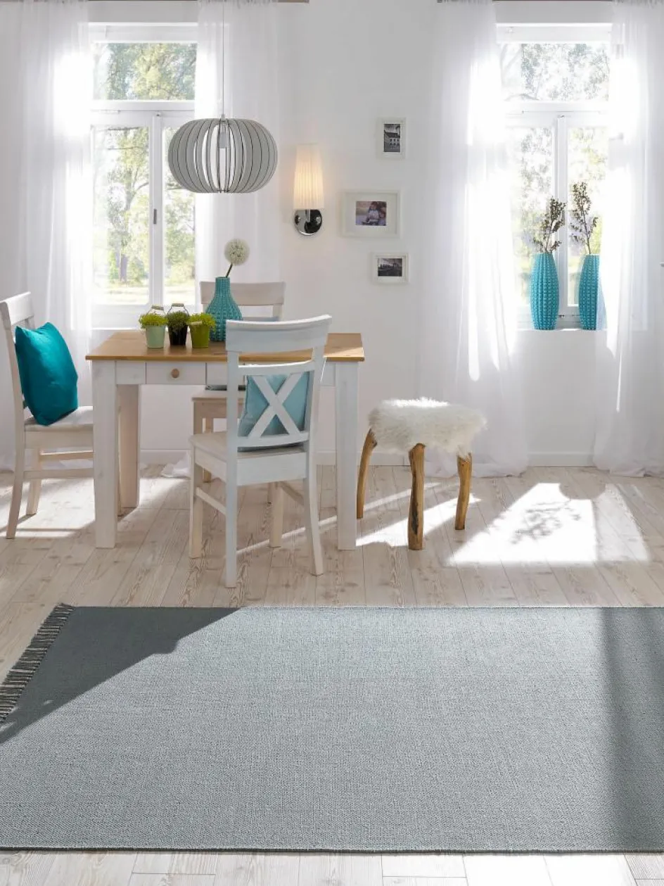 sind analogzur Grundfarbe eingefärbt. Wenn der Teppich nicht mehr als 50 % des Fußbodens eines Raumes bedeckt, ist er für Fußbodenheizung geeignet. Zu diesem Naturfaserteppich empfehlen wir für Ihre Sicherheit auf Schritt und Tritt die KIBEK ALLSTOP-SUPER Teppich-Spezialunterlage.| Art: | Flachgewebe |