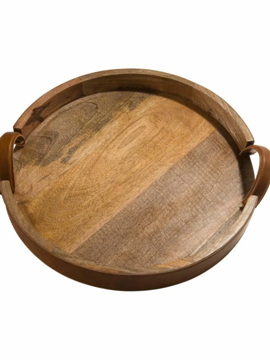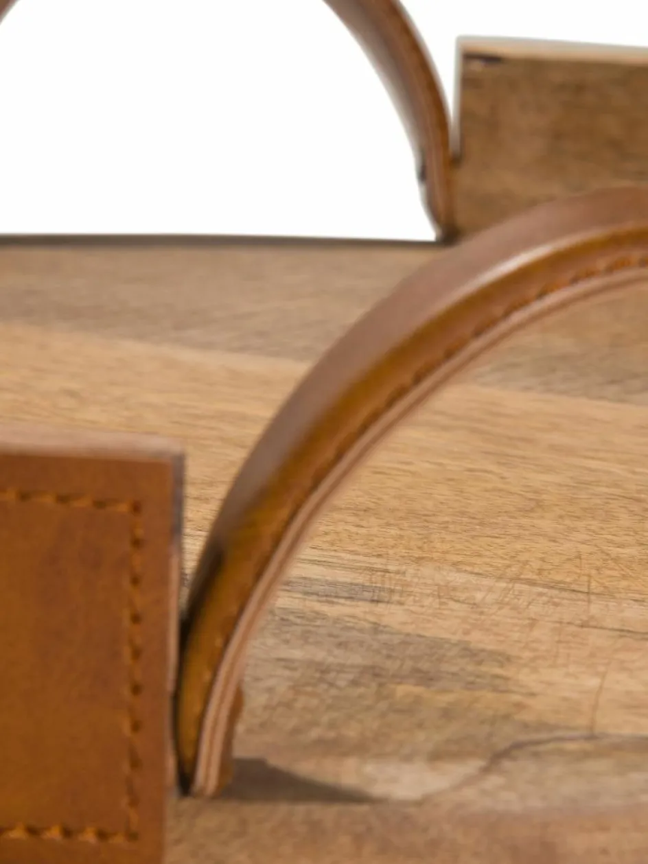 Stabiles Holztablett mit Kunstledergriffen. Sowohl zum Transport von Gläsern als auch zur Dekoration wunderbar verwendbar.
