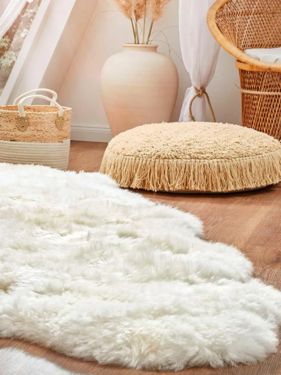 . Oberfläche aus 100% Schaffell.| Eigenschaften: | für Fußbodenheizung geeignet |